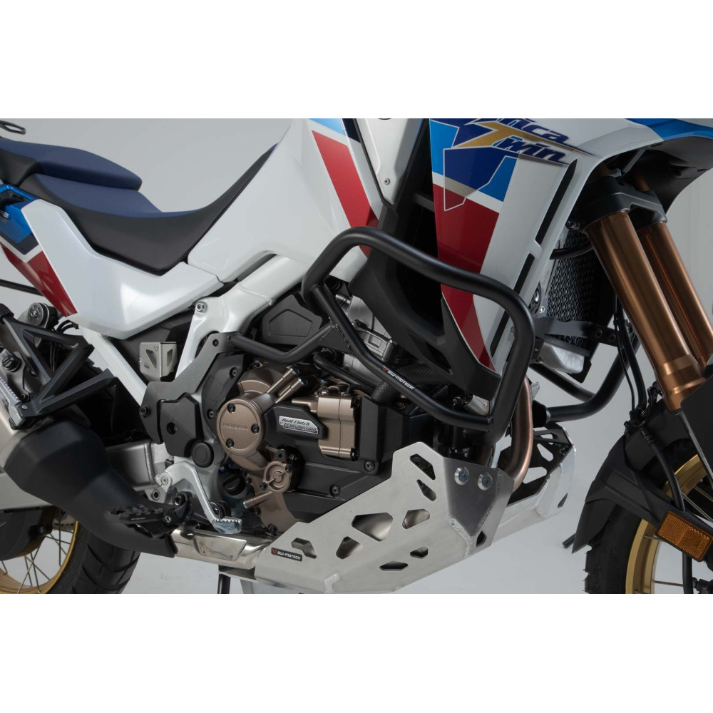 Aby ladily s modelem Honda Africa Twin CRF1100L Adventure Sports, jsou nárazové rámy vyrobeny z robustní trubkové oceli s práškovým lakem odolným proti povětrnostním vlivům a korozi v černé barvě. Povrchová úprava je prováděna v nejmodernějším zařízení v závodě SW-MOTECH v Brně v České republice.