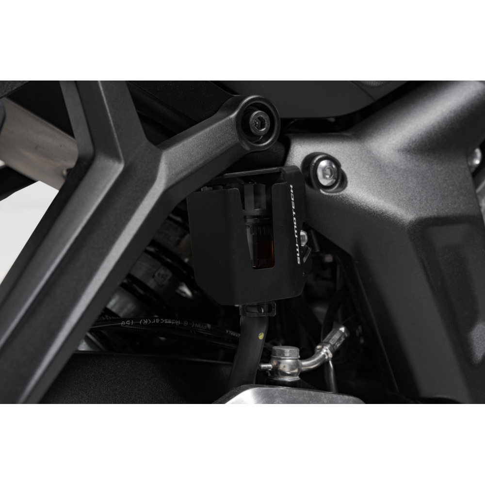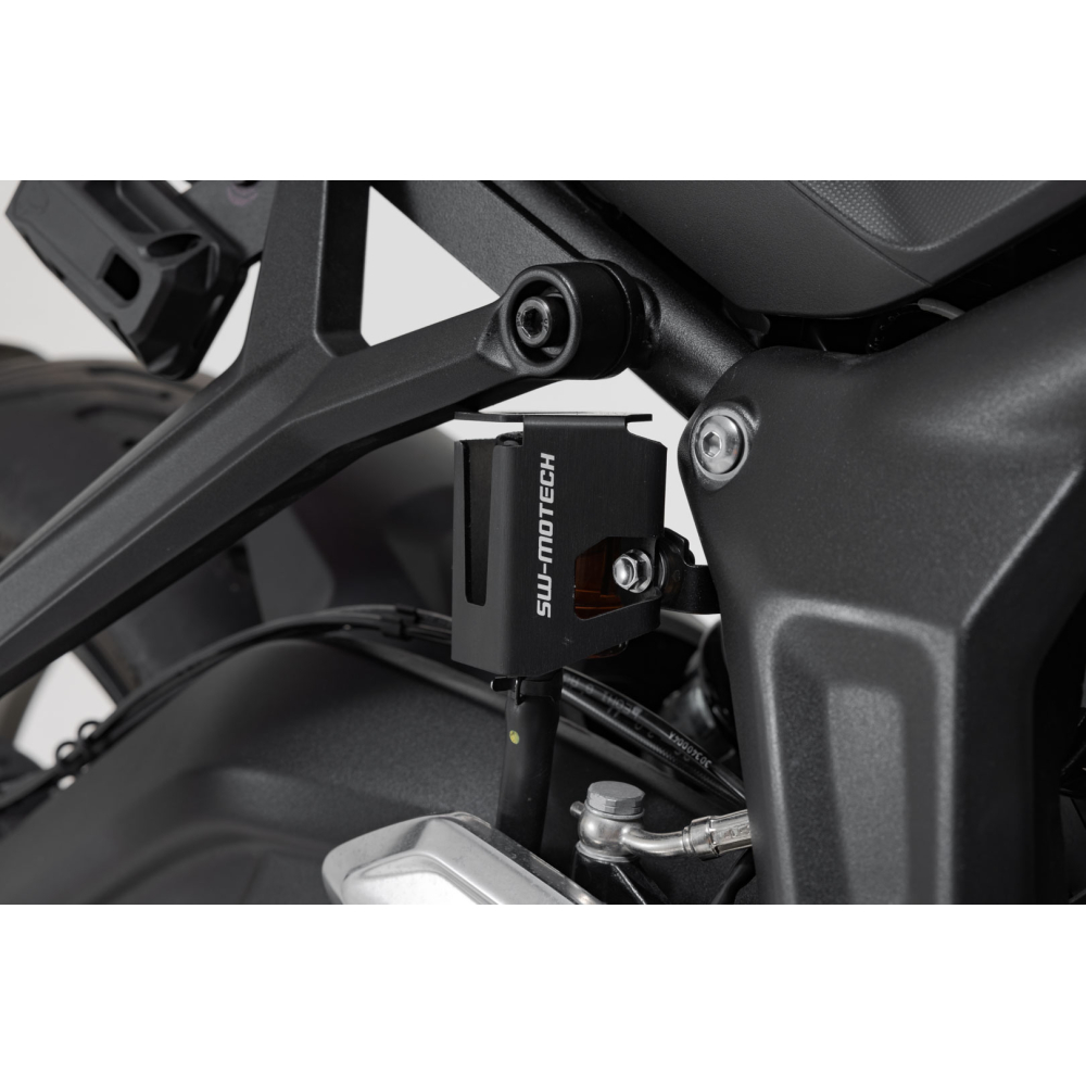 Kompaktní ochranný kryt brzdové nádrže chrání původní brzdovou nádrž před odletujícími kamínky a současně zabraňuje nechtěnému odstranění krytu. Chránič lze nainstalovat na motocykl v několika jednoduchých krocích.
