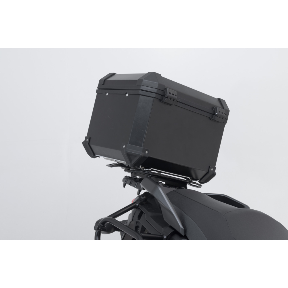 Toto kompletní řešení obsahuje vše potřebné pro instalaci horního kufru: horní kufr TRAX ION, nosič specifický pro motocykl, adaptérovou desku a sadu zámků TRAX.