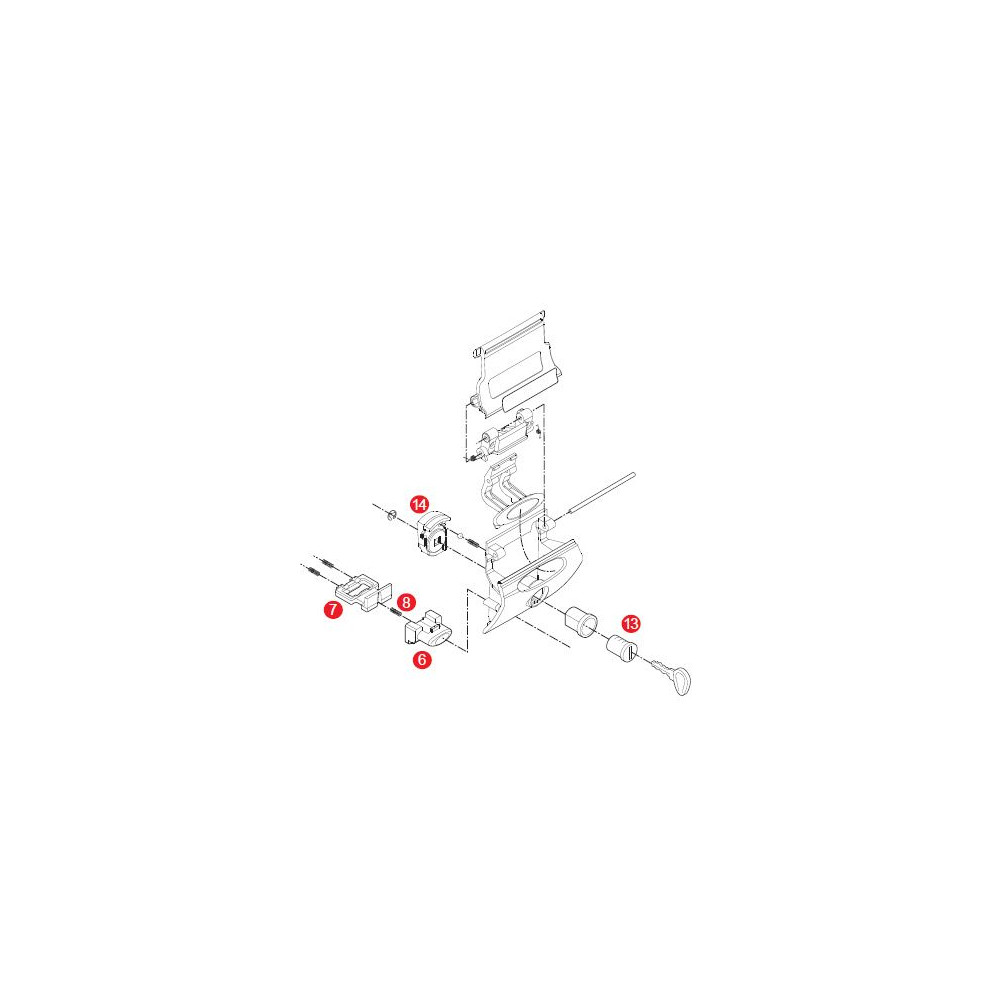 Pružinka, tlačítko a západka ze spodní části obrázku nejsou součástí balení.