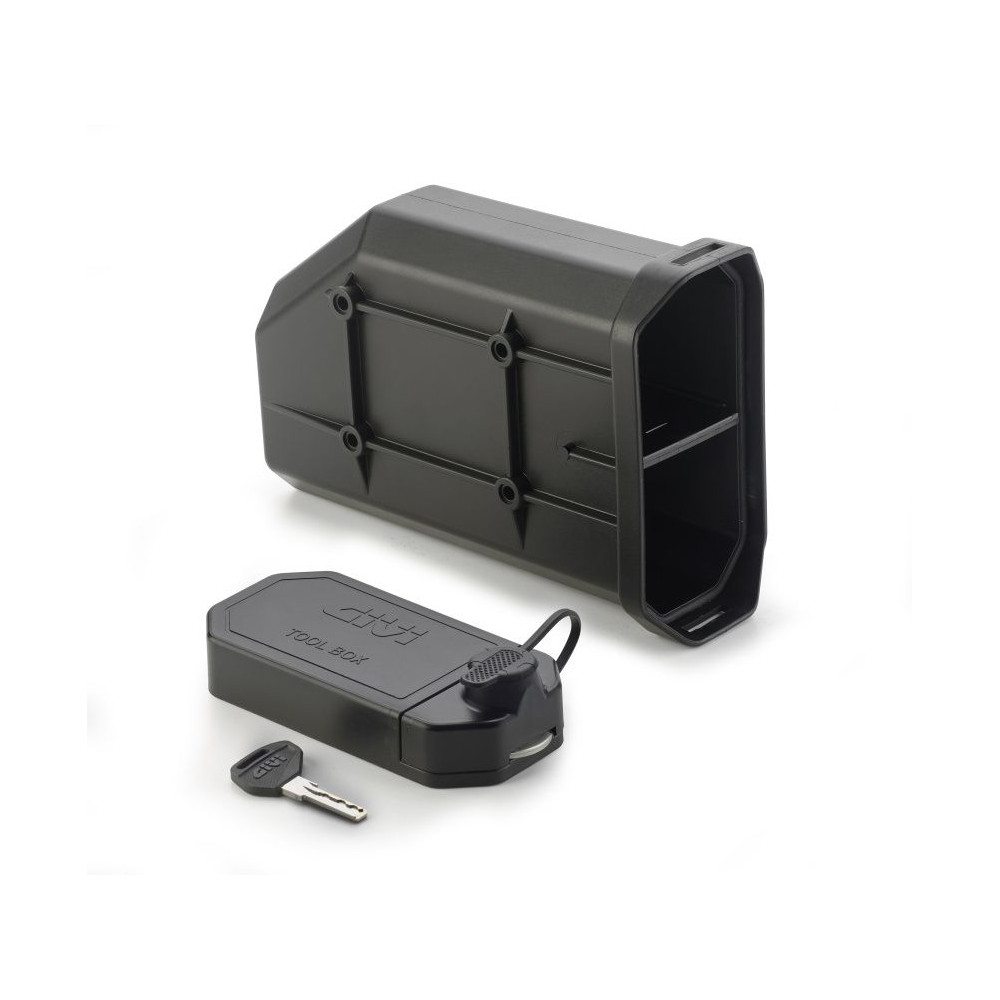 Plastová schránka na nářadí do trubkových nosičů GIVI řady PL..., PLR..., PL...CAM. Rozměry 260x90x170 mm. Uzamykatelná klíčem GIVI řady SL... Pro montáž do trubkového nosiče bočních kufrů použijte montážní sadu TL...KIT specifickou dle modelu motocyklu (viz MOJE MOTO), případně univerzální sadu S 250KIT. Pokud chcete sjednotit klíče kufrů a schránky, doporučujeme sadu 5 zámků SL105 - kupte samostatně.