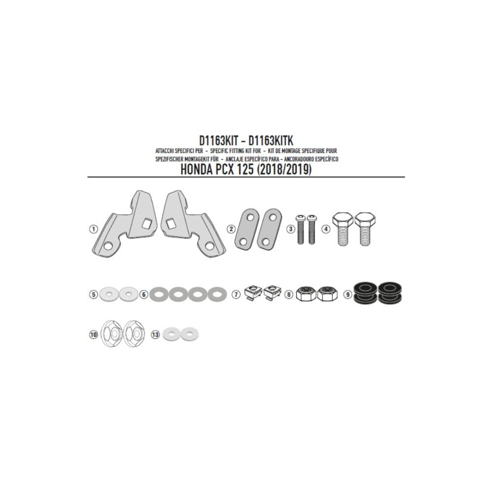 D1190KIT montážní sada Honda PCX 125 (21-24) k plexi 1190DT