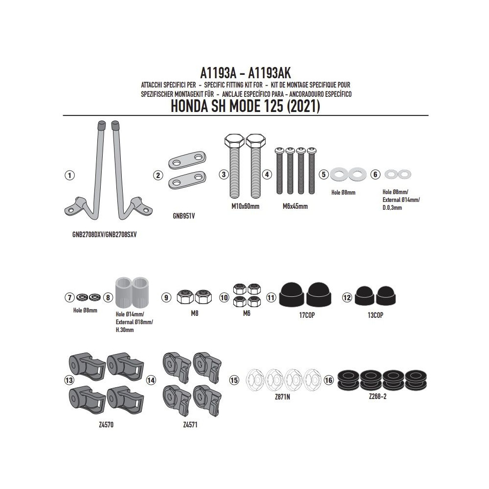 A1193A montážní sada pro plexi 1193A Honda SH Mode 125 (21-25)