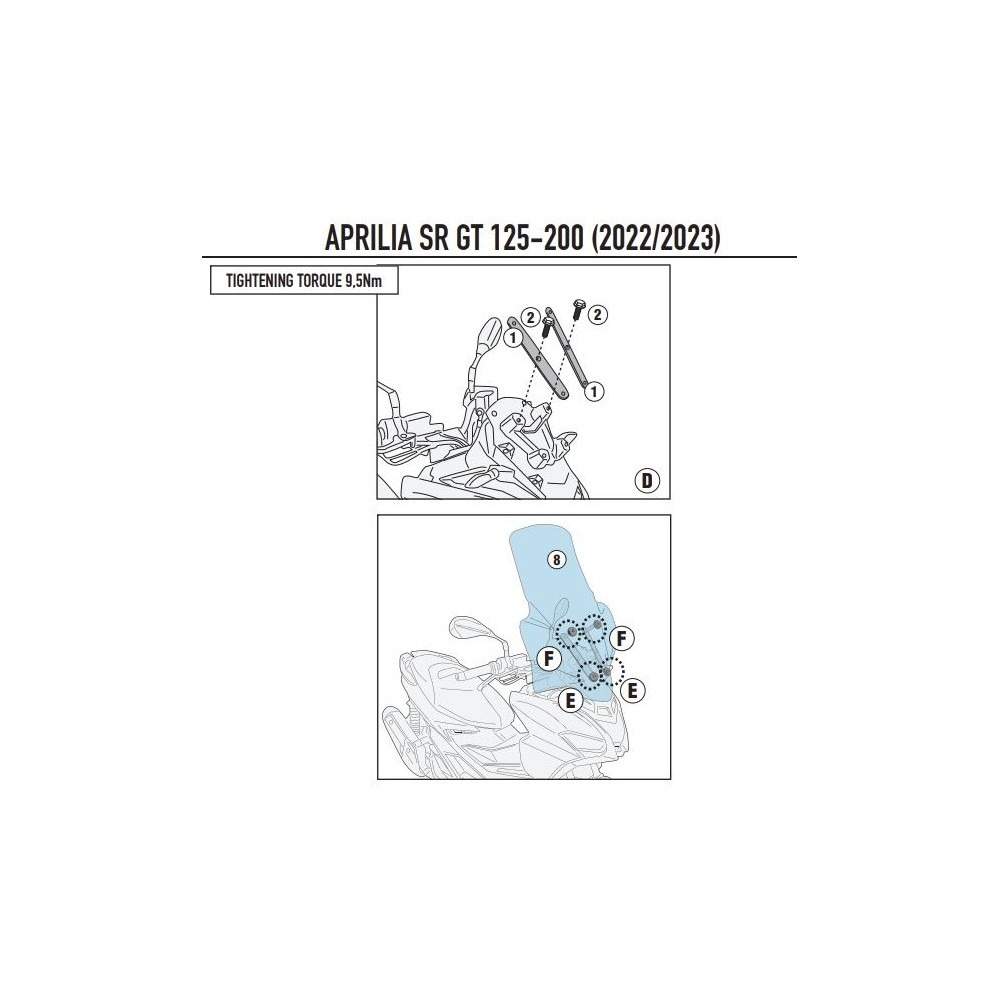 D6711KIT samostatná montážní sada pro čiré plexi 6711DT pro Aprilia SR 125-200 GT (22-25)