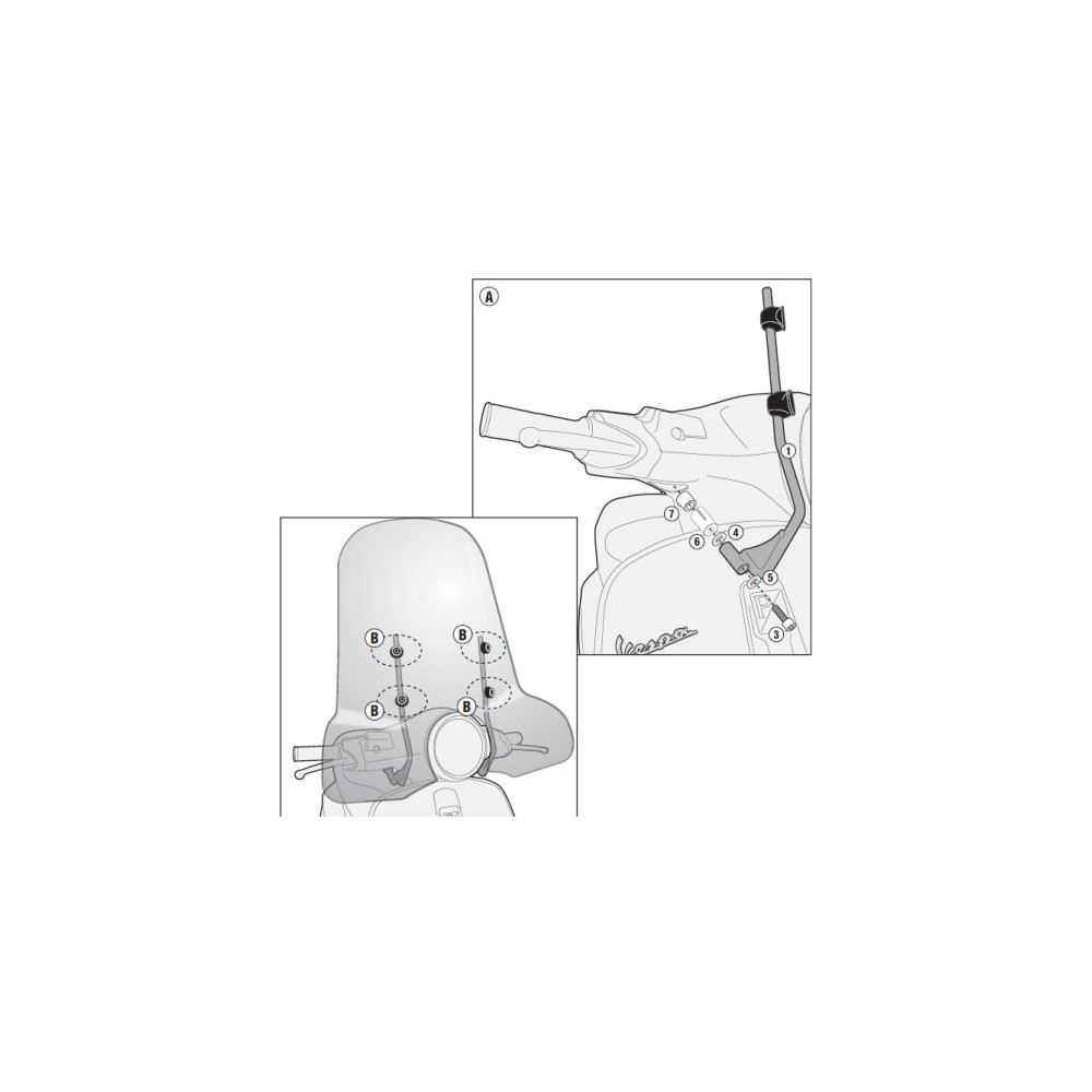 A5620A montážní sada pro plexi 104A/S pro Piaggio Vespa GTS 125-300/GTS 125-300 Super (23-25)