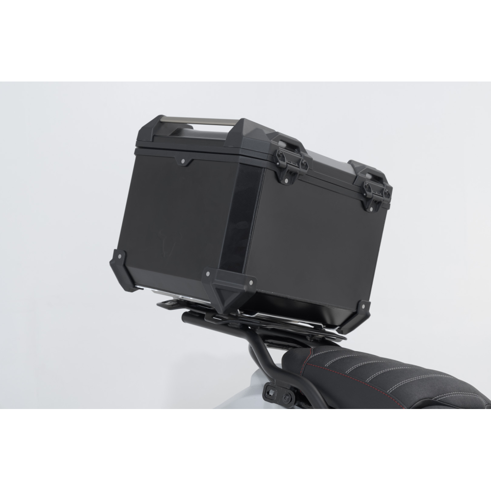 Systém horních kufrů TRAX ADV se skládá z robustního černého horního kufru a sladěného nosiče ADVENTURE-RACK pro Ducati DesertX.